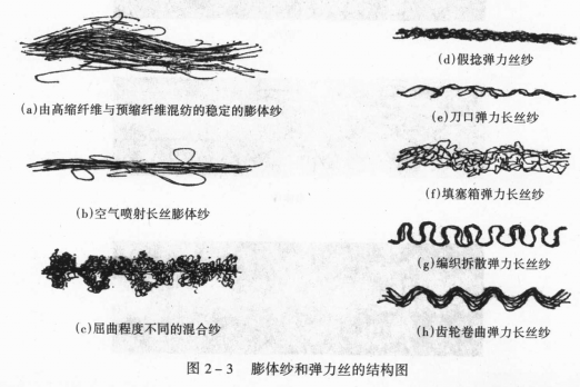 变形丝:化学纤维原丝经过变形加工使之具有卷曲、螺旋、环圈等外观特性。加工的目的是增加匠处的蓬松性伸缩性和弹性。根据夺形处的性能特点,通常有弹力丝、膨体纱和网络丝三种。