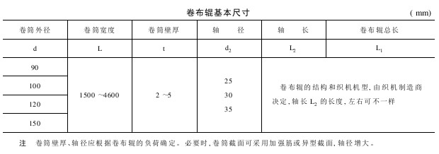 卷布辊的基本尺寸见下表。