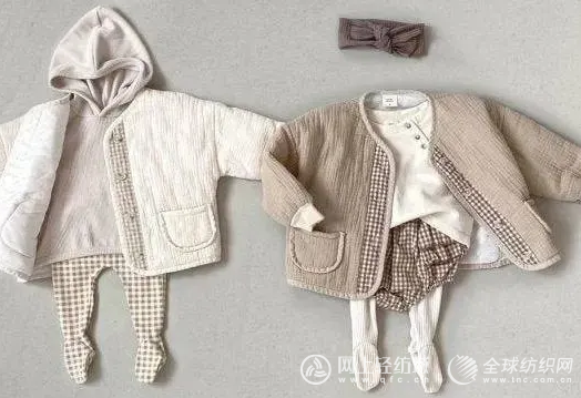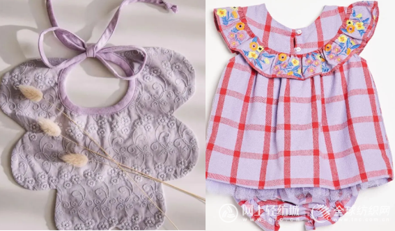 2023春夏童装色彩预测报告中的未漂原色、燕麦奶色、香草蛋糕色等冷色调适用于婴幼儿服装。亚麻、可持续棉、大麻纤维都适合该天真烂漫的美学。纹理梭织布、棉质纬缎、高级单面汗布、手织针织布都适合使用黄油中性色,搭配月桂叶色和桃粉沙色时效果好。