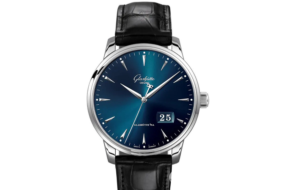 格拉苏蒂原创的正装表就很有代表性,上面的这款议员卓越大日历腕表造型简约纯粹,并且继承了格拉苏蒂原创的经典设计,由此更增添了辨识度。直径42毫米的精钢表壳搭配蓝色的太阳放射纹表盘,表盘的光泽和纹路都非常漂亮。
