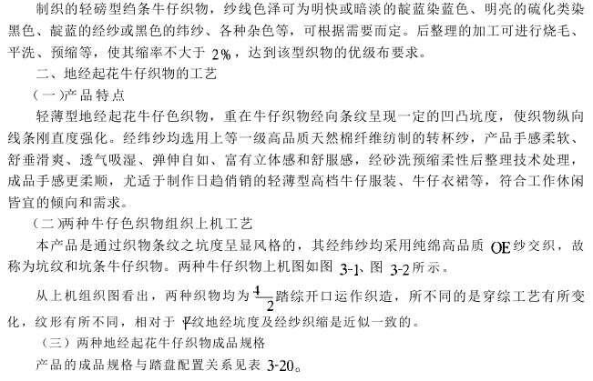 该绉条牛仔织物为轻磅型,规格见表3-15。