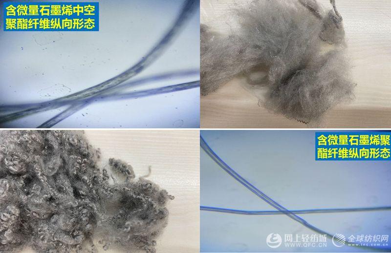 绚彩纺织培训中心的严惠平老师也对烯禾纺织的石墨烯涤纶中空短纤进行了实验,他表示在显微镜下能看到含微量石墨烯。中空涤纶短纤维结构,包含大量静止空气,能为织物带来轻质弹性、良好透湿性以及舒适的保暖效果。