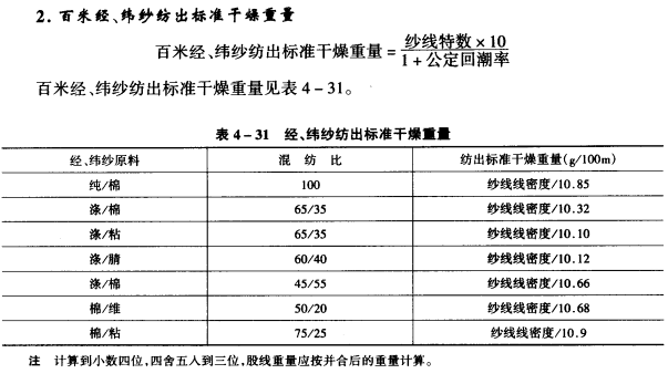 (2)涤/棉仲长率单纱按1%计算,股线按0计算。