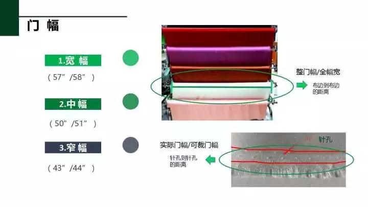 针织物了解密度与门幅后就能大概了解是什么型号的原机生产的,比如34寸36针还是24针的。横列密度也可以作为线长的参考。