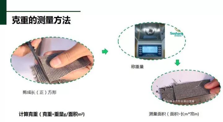 同一块门幅的布料我们要称两边与中间位置的每平方米分量,假如差别很大那这个织物的生产流程与设计肯定出问题了。