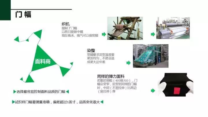 在肯定范围内,门有效宽度能够在裁剪的时候排版更容易,还能够节省布料,但在布料生产过程中是有技术困难的。比如门幅越宽意味着边中颜色差异的操纵就越难,同时织布机也是限制门幅的很大缘故,你想想瞧在过去有梭织机,那个梭能打多宽呢?