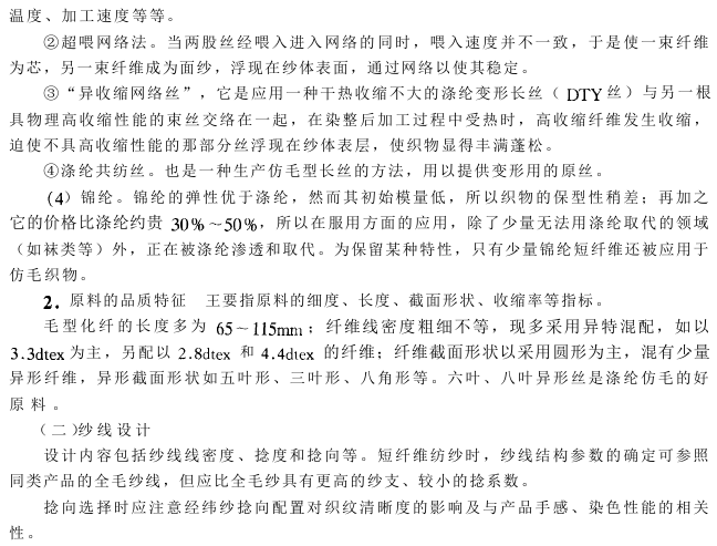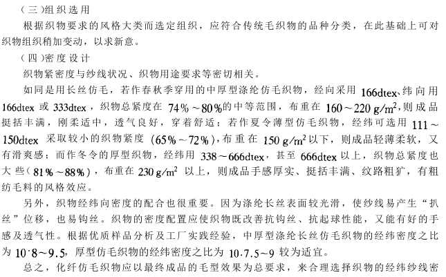 化纤仿毛织物设计与生产工艺要点