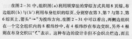 使布边平坦美观,还不增添综页数,因为这种布料其经纬纱密度普通都较大,故意减少边组织的密度可促使布边平坦。这种巧妙的布边组织设计是可取的。